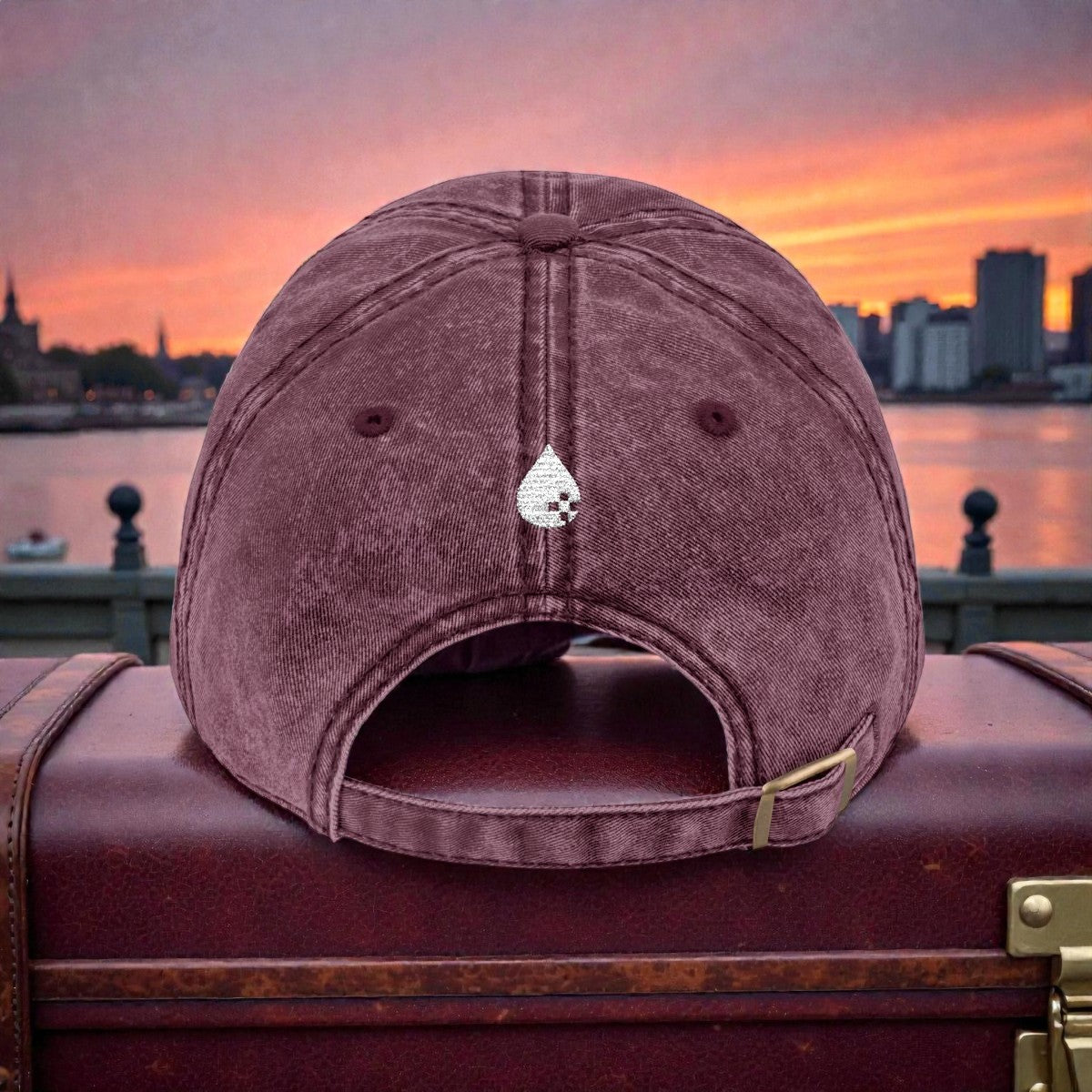 The washed-out vintage effect gives it a unique, distressed feel, with each hat having slight color variations for that one-of-a-kind charm. Finished with 6 sewn eyelets for breathability, a black sweatband for comfort, and a metal snap buckle with an antique brass finish, this cap is the perfect mix of style and durability.
