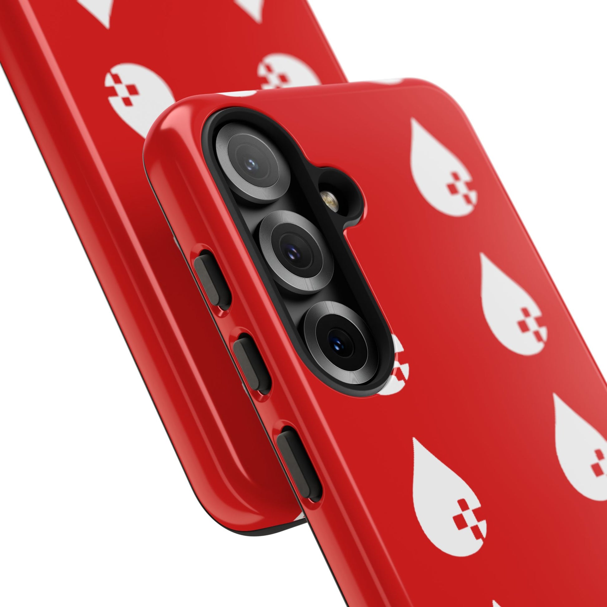 This slim dual-layer phone case channels grit and glamour. Glossy red panels are covered edge-to-edge with the Sang Led Blood Logo — white, dripping teardrop characters that look like street art reheated into something romantic and raw. It hugs your device with a hard polycarbonate outer shell and a soft TPU silicone liner that cushions drops without adding bulk. The finish catches light and attention while the rugged construction keeps your phone safe through a commute, a late show, or a weekend of live gigs. Buying this case also keeps the music moving: proceeds support new releases, live shows, and Sang Led Network projects — so it’s more than protection, it’s part of the culture.